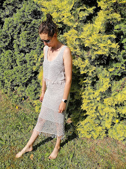 Tę wykonuje z włóczki Kokonki Fresco w składzie len i wiskoza. Zużyłam ok 1000m.