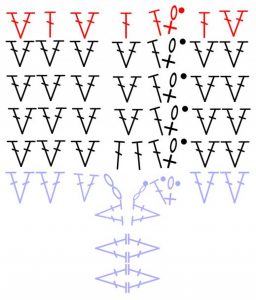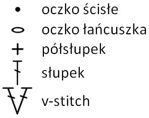 Moją próbę opisuję na ściegu głównych (jak na schemacie), czyli v-stitch.